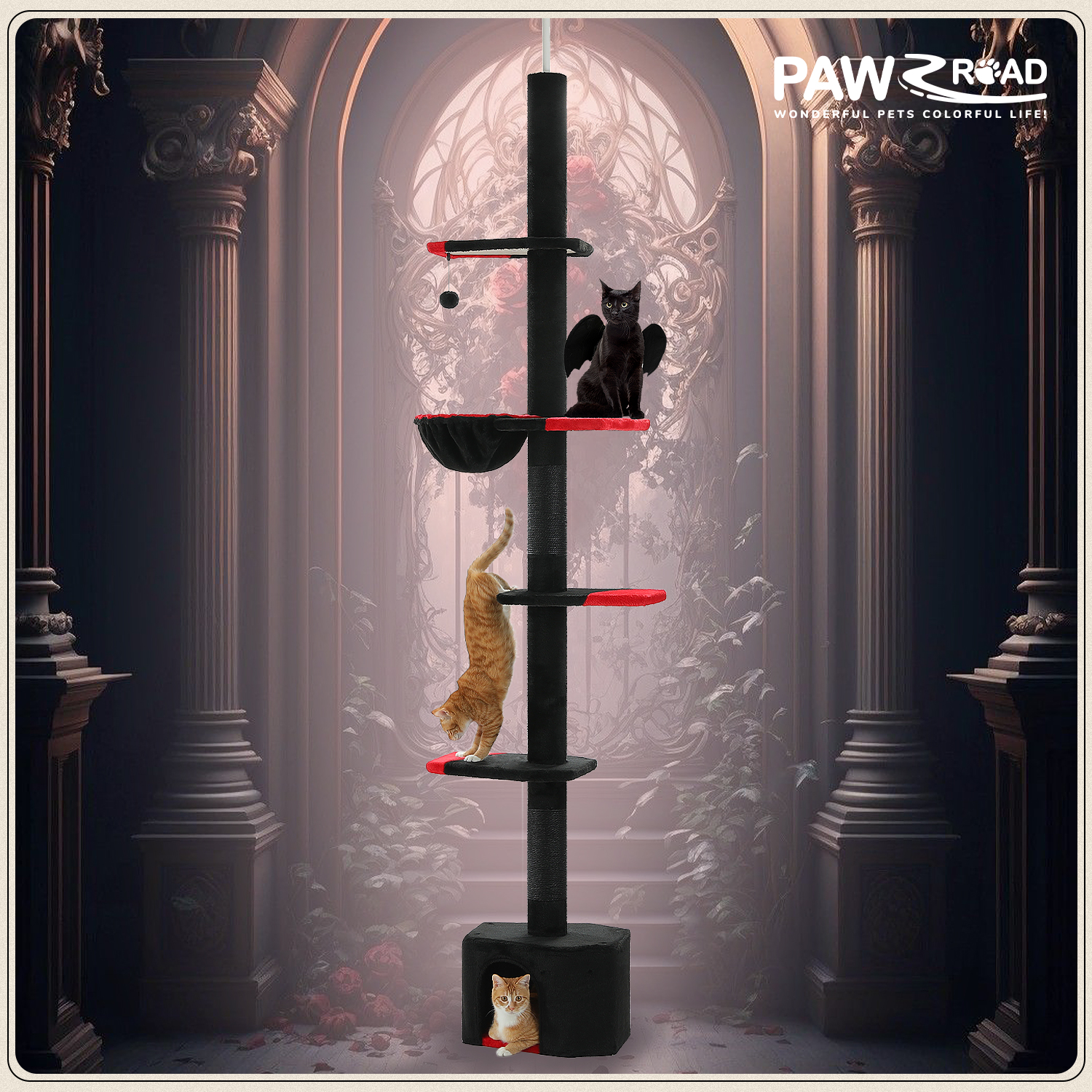 Your Pet Cat Adjustable Height Cat Tree for Indoor, Floor to Ceiling Cat Tower with Cozy Condo, Hammock, Sisal Scratching Post, Dangling Ball