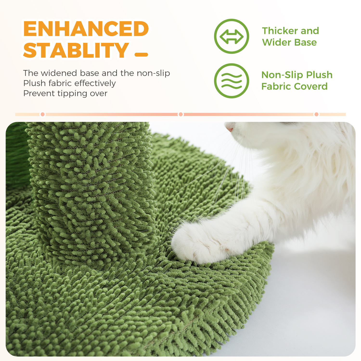 Unique Design: This Cat scratching post with 3 scratching poles covered with green natural sisal and carpet standing on the round base like a mimic cactus rising from the golden desert looks cute and fresh, helps blend into any modern decor, and adds fun flair to any room.