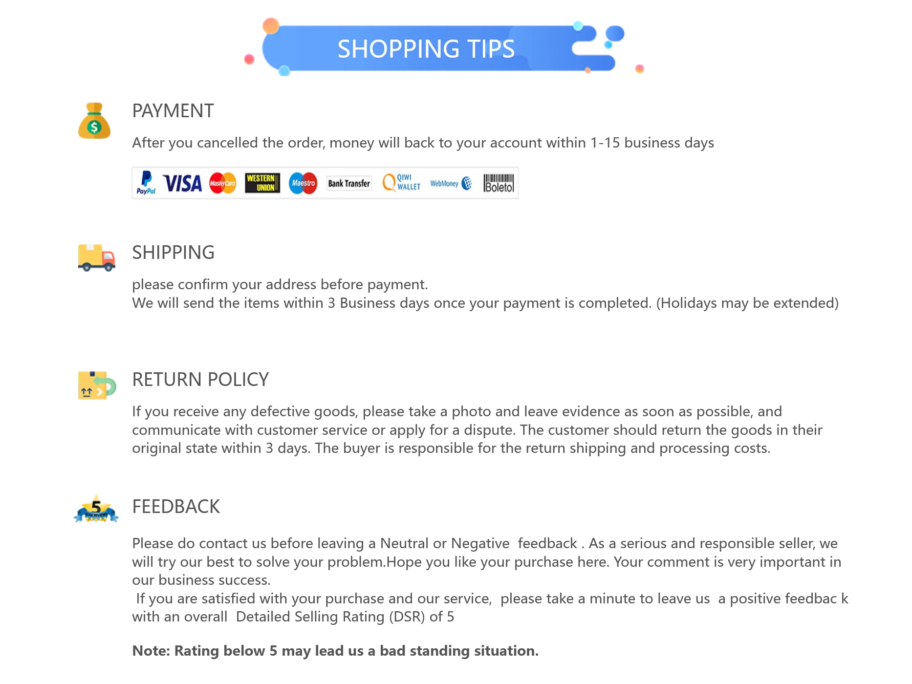 We are glad to bring our customers great value and service. That’s why we provide fast shipping from our Fulfillment Center in California by UPS and USPS.
