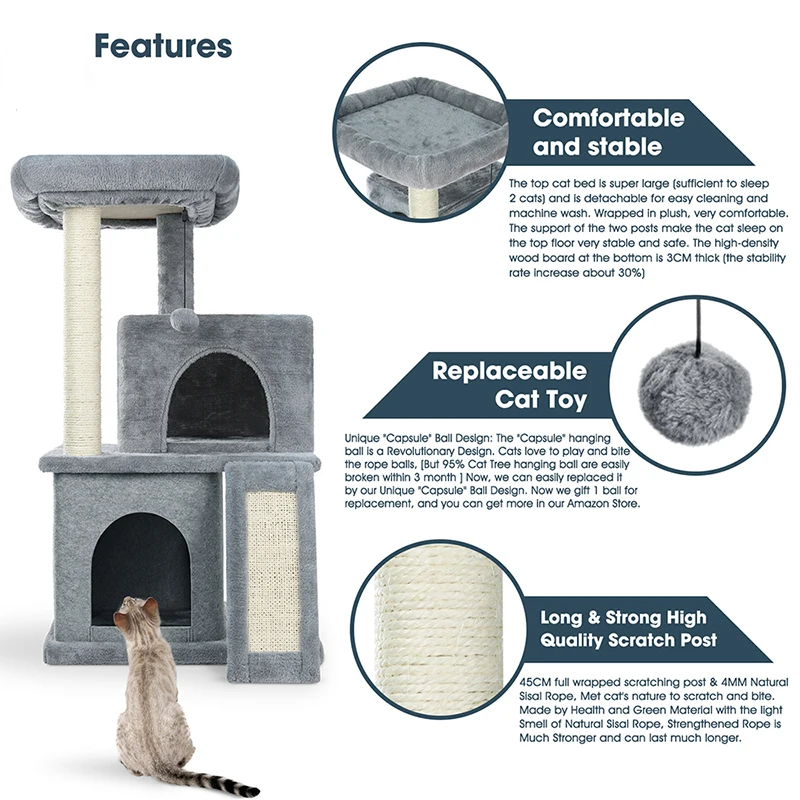 Katzenbaum-Turm aus Holz für Haustiere, Kratzbaum mit Kratzbaum für Katzen, Kletterbaum, Spielzeug, Schutz der Möbel, Nest