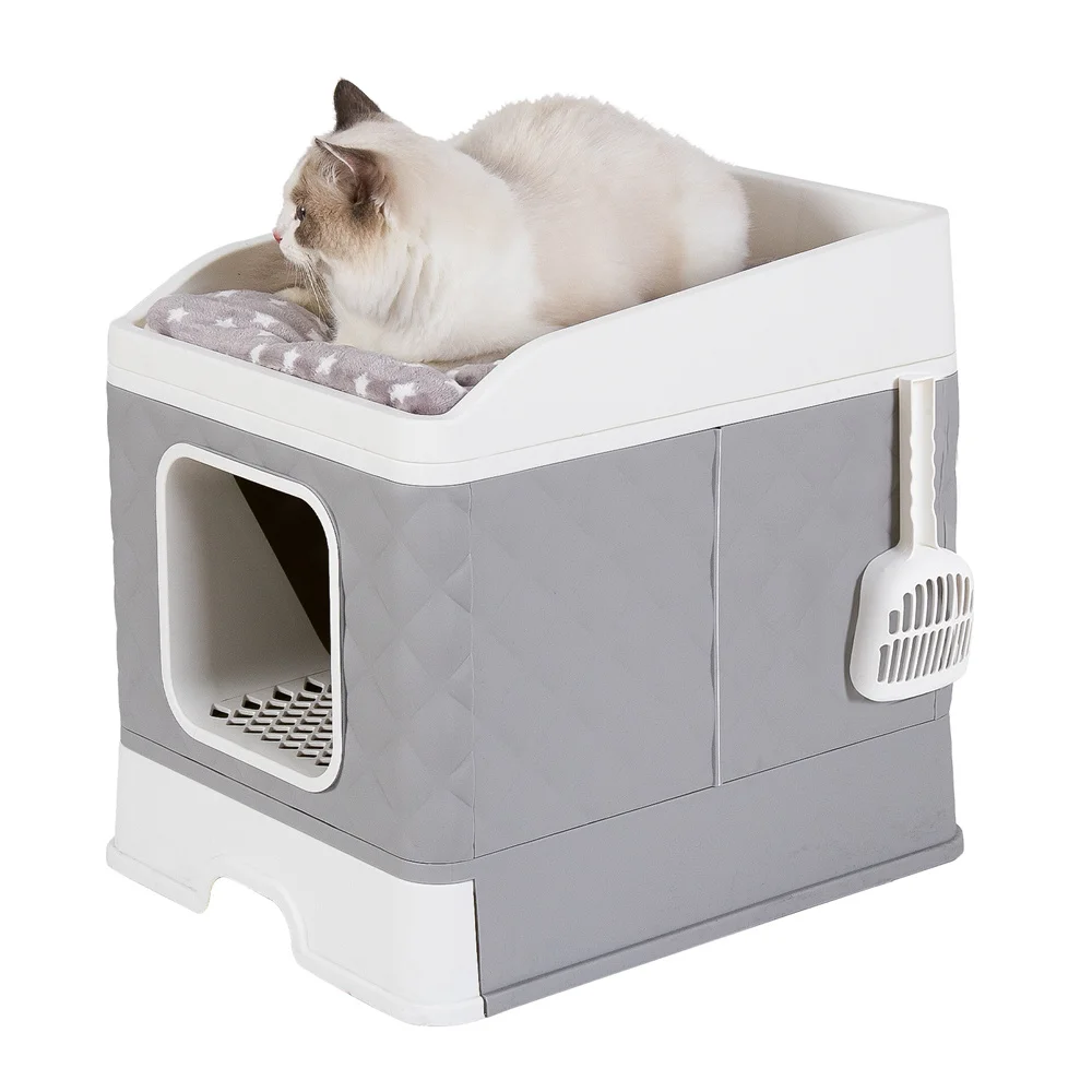 Your Pet Cat Large Cat Litter Box Enclosure Toilet Pet Hidden Cabinet House Cat Litter Tray Potty with Top Cushion Mat Bed and Litter Scoop