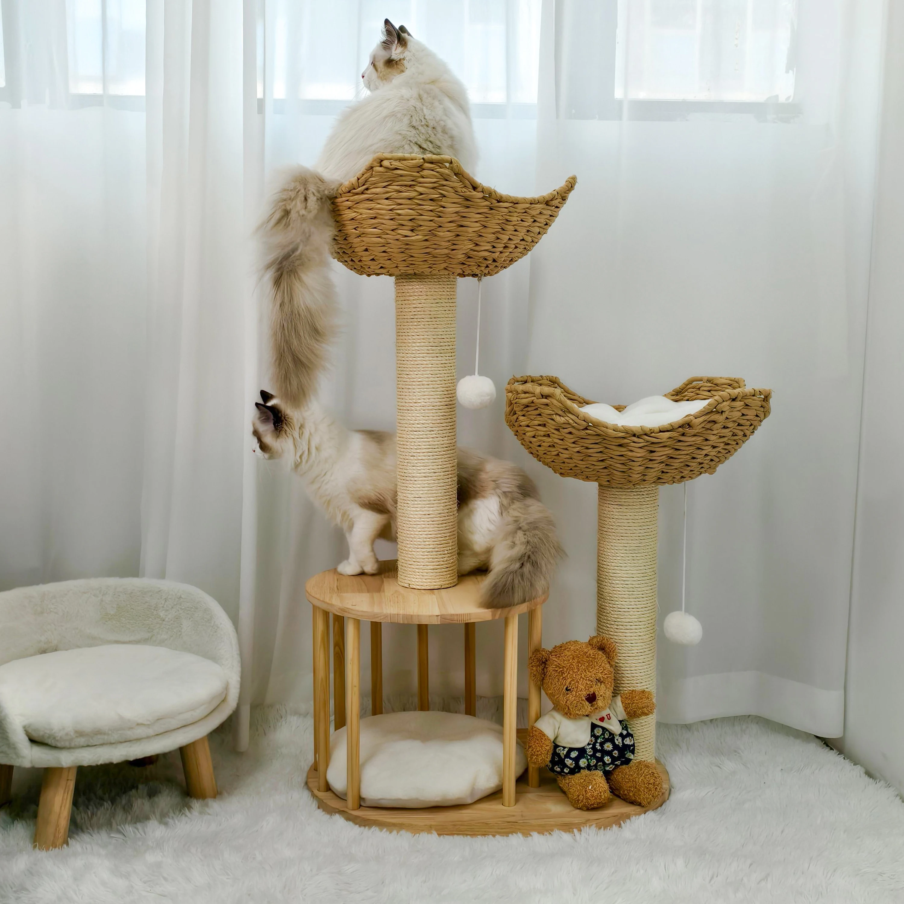 Strictly selected cat tree with natural wood, no change to its shape, remains unique.