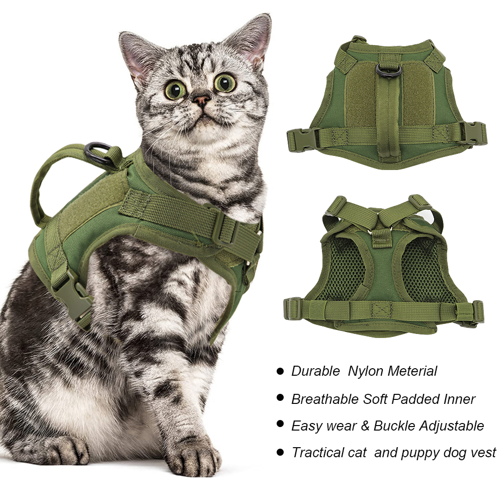 Military Tactical Cat Harness Nylon Puppy Cats Vest Harnesses With Handle Adjustable for Cats Small Dogs Pet Training Walking
