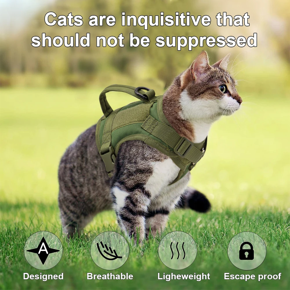 Military Tactical Cat Harness Nylon Puppy Cats Vest Harnesses With Handle Adjustable for Cats Small Dogs Pet Training Walking