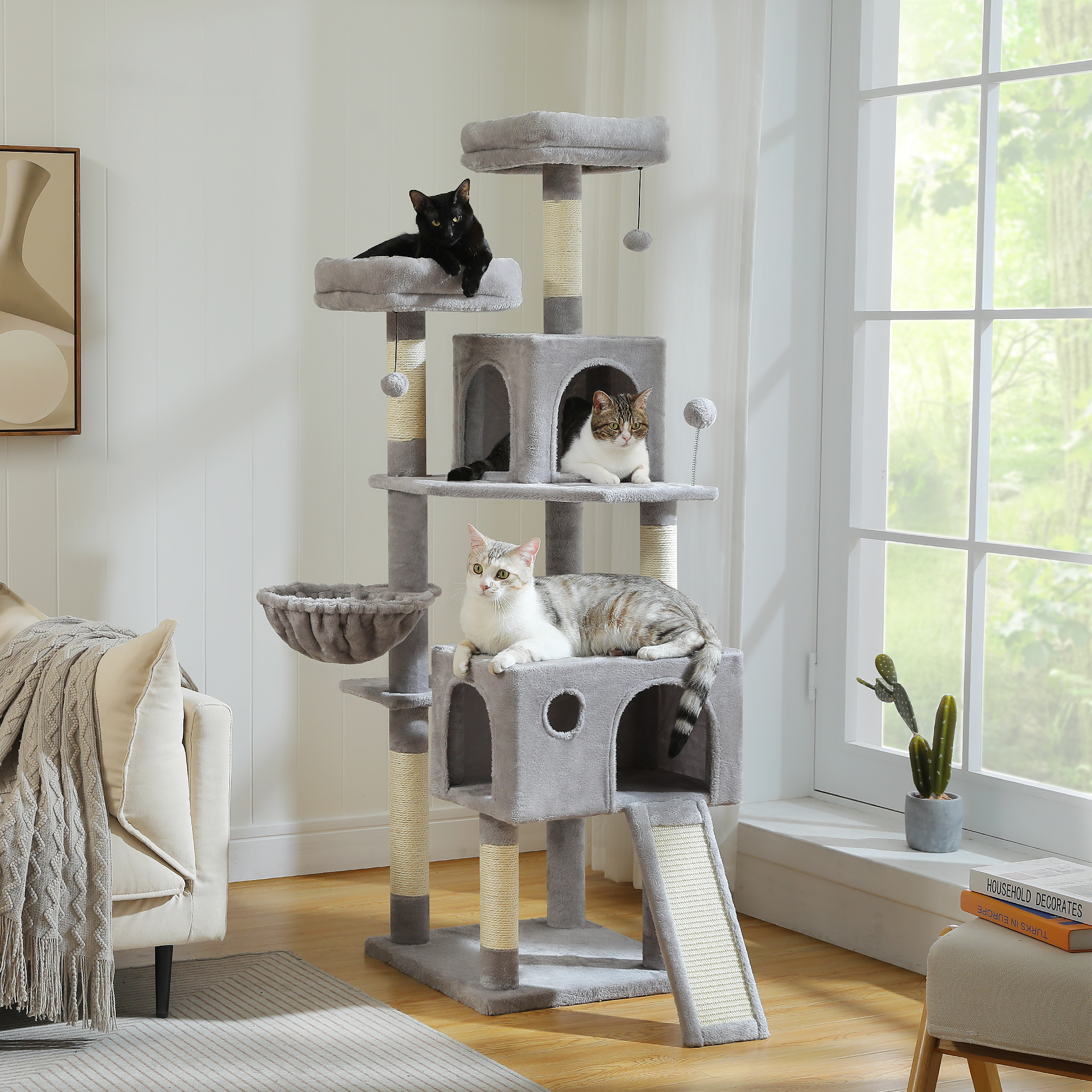 Multi-Level Design: This cat tree features multiple levels and platforms, providing ample space for cats to climb, play, and rest.
