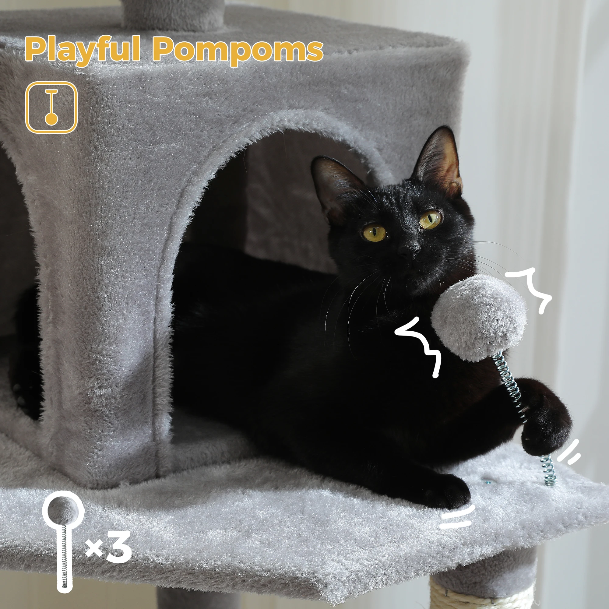 Interactive Features: The tree includes hanging toys and balls, stimulating your cat’s hunting instincts and keeping them entertained. Cats can play by themselves.
