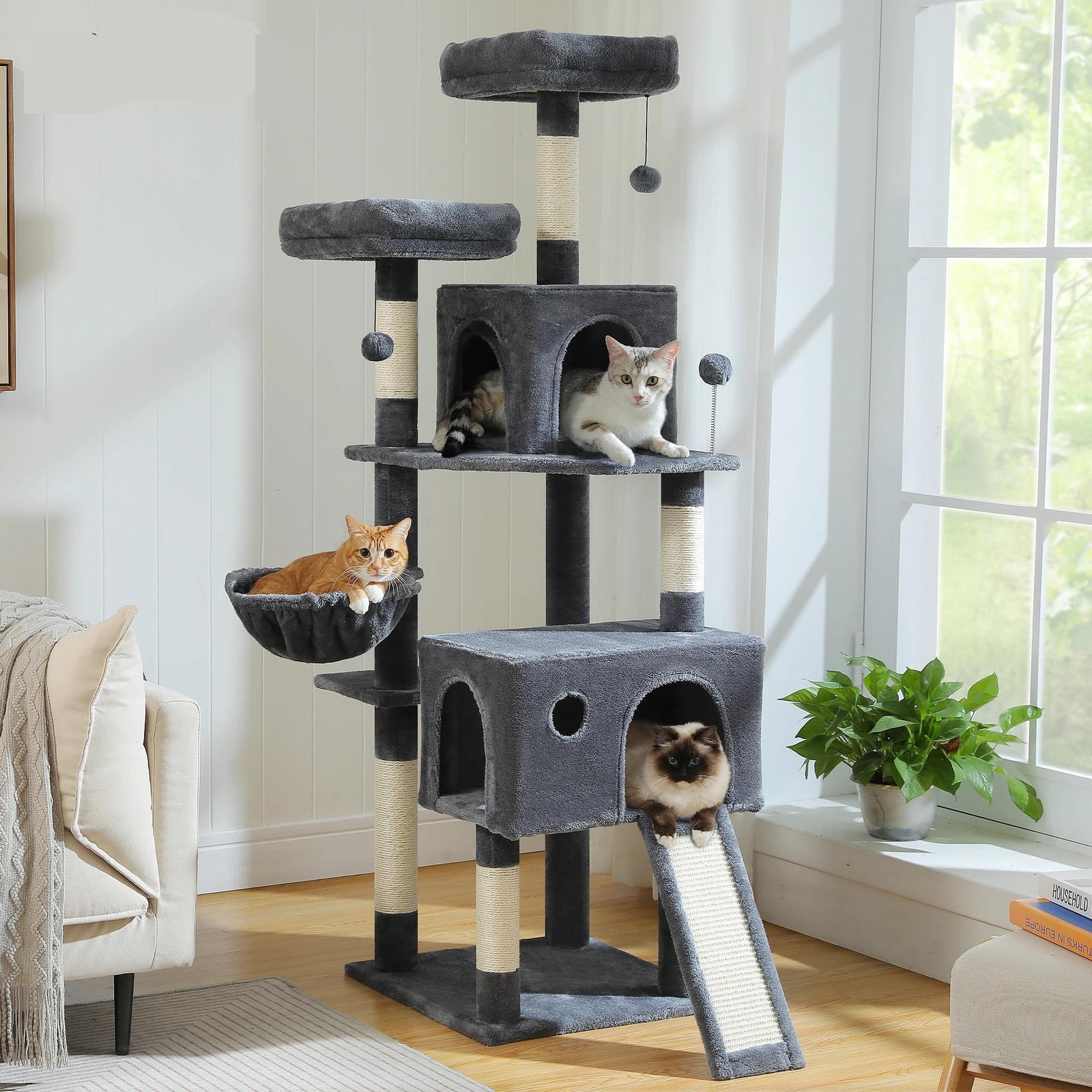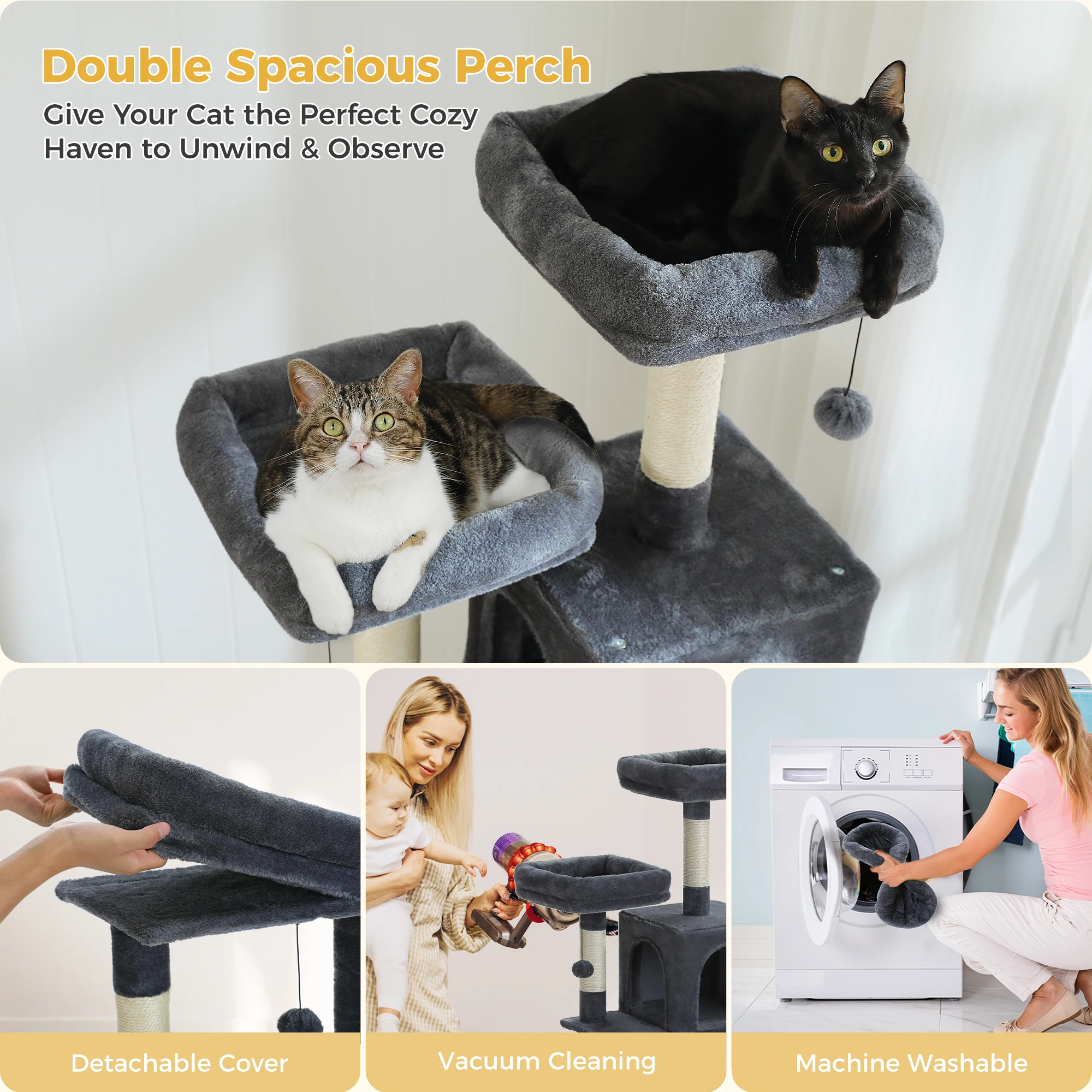 Multi-Level Design: This cat tree features multiple levels and platforms, providing ample space for cats to climb, play, and rest.