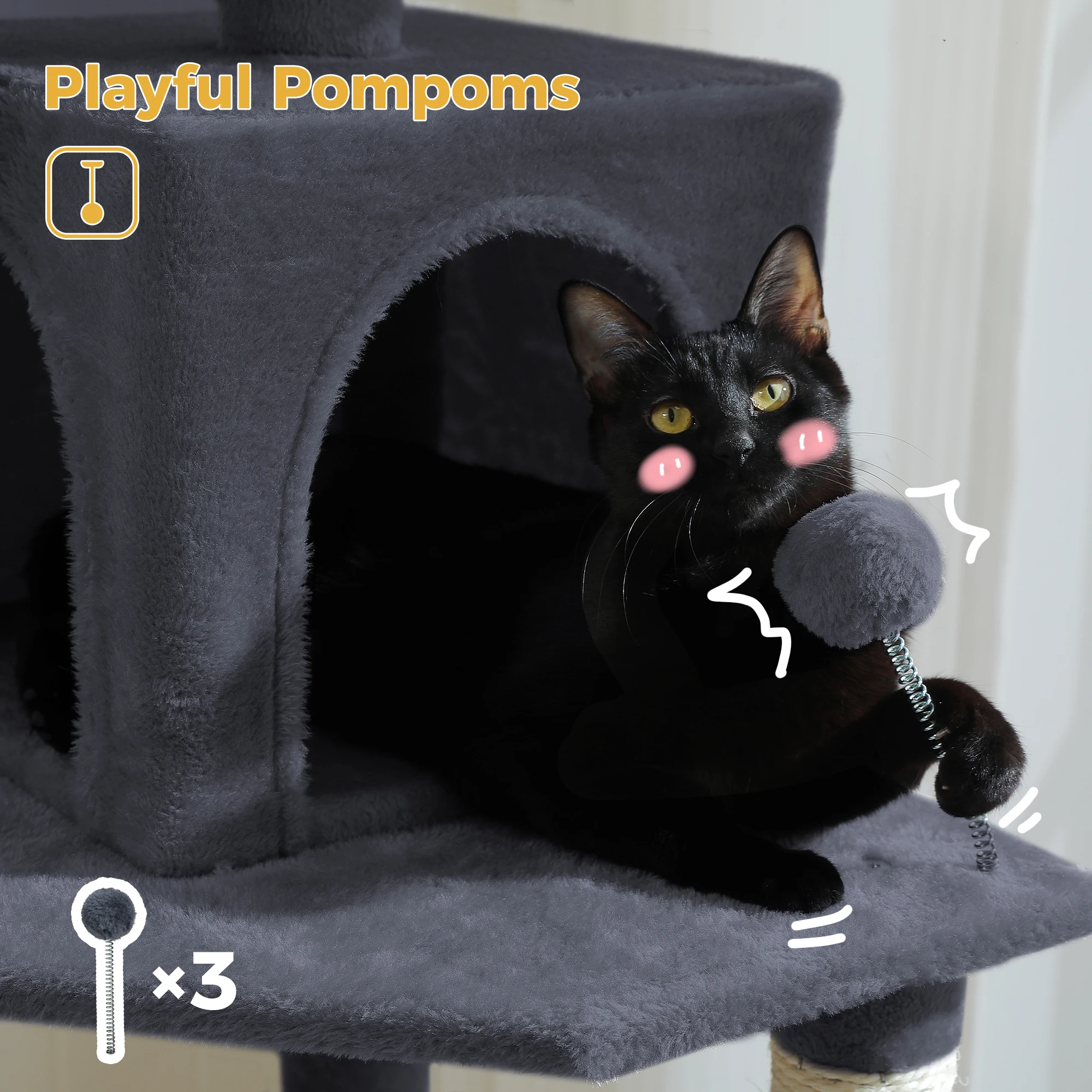 Interactive Features: The tree includes hanging toys and balls, stimulating your cat’s hunting instincts and keeping them entertained. Cats can play by themselves.