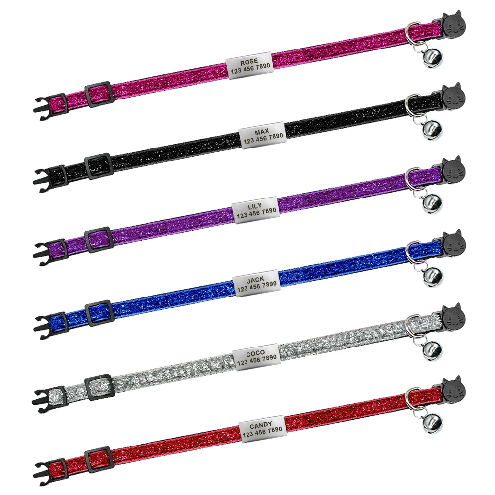 Your Pet Cat Personalized 1cm Width Cat Collar with Bell Safe Breakaway Cats Collars Quick Release Cute Necklace Free Engrave For Cats Kitten