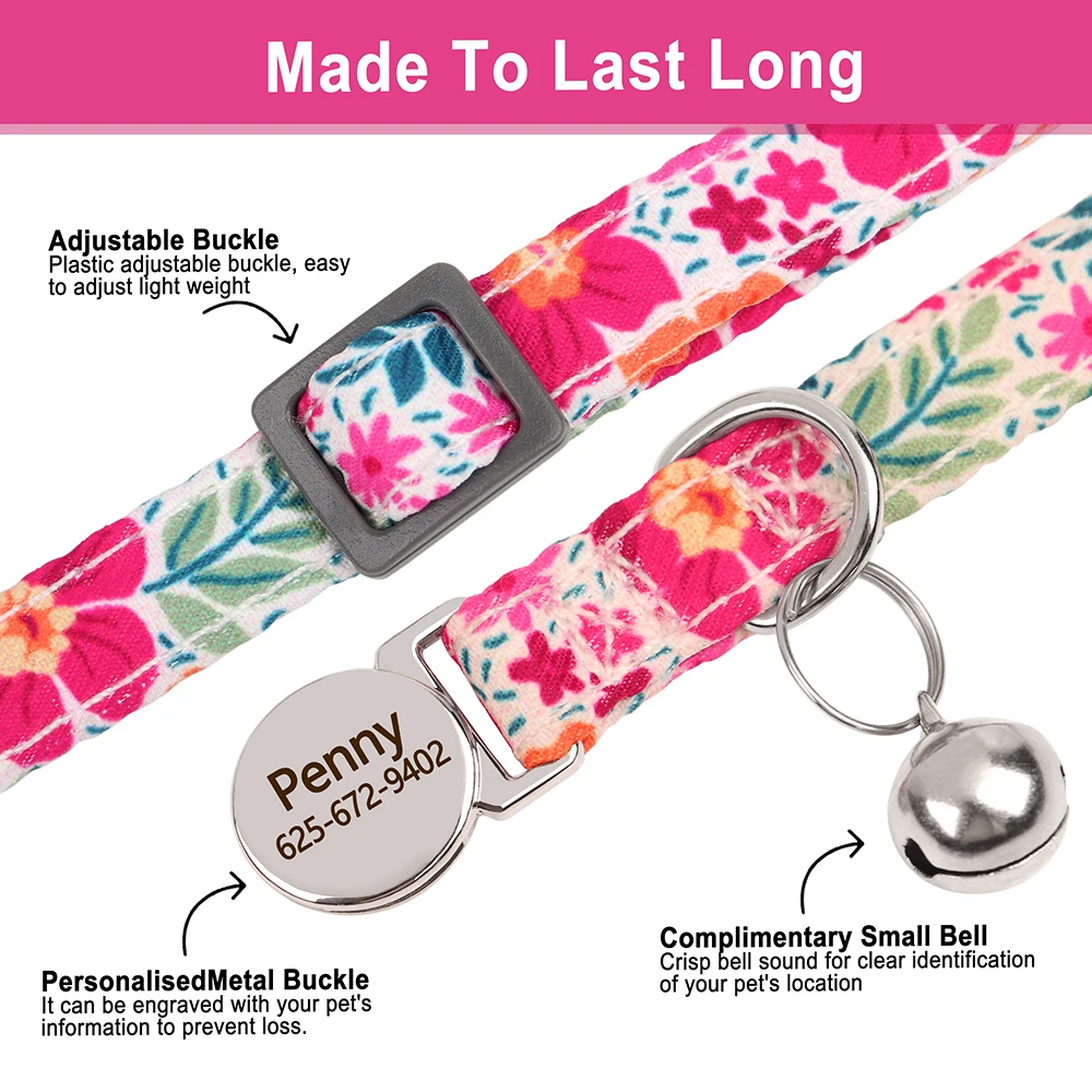 The necklaces look pretty on the cats, they have a good finish and the engraving is well done. The seller wrote as is the name and telephone on each assigned necklace. Very satisfied with the purchase.