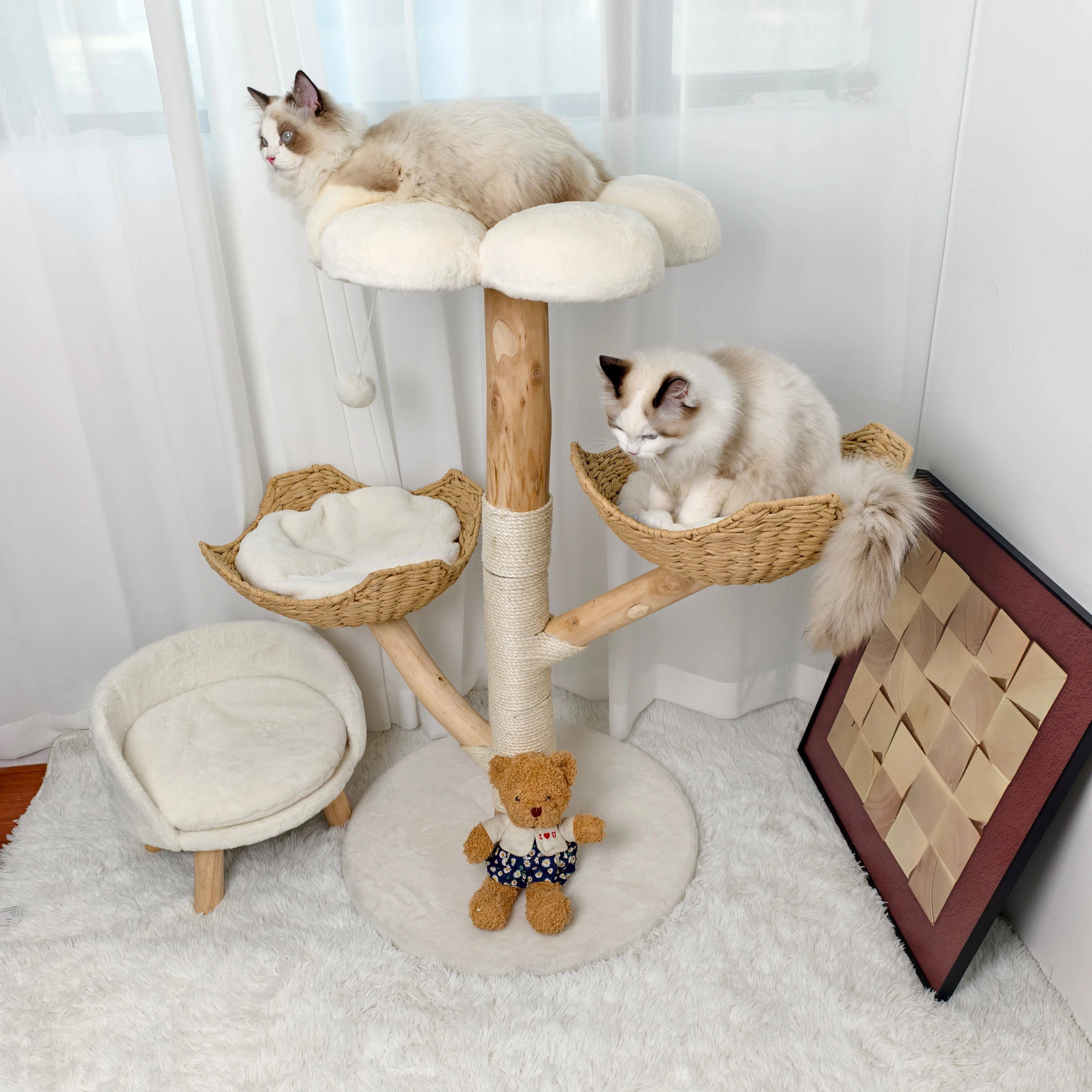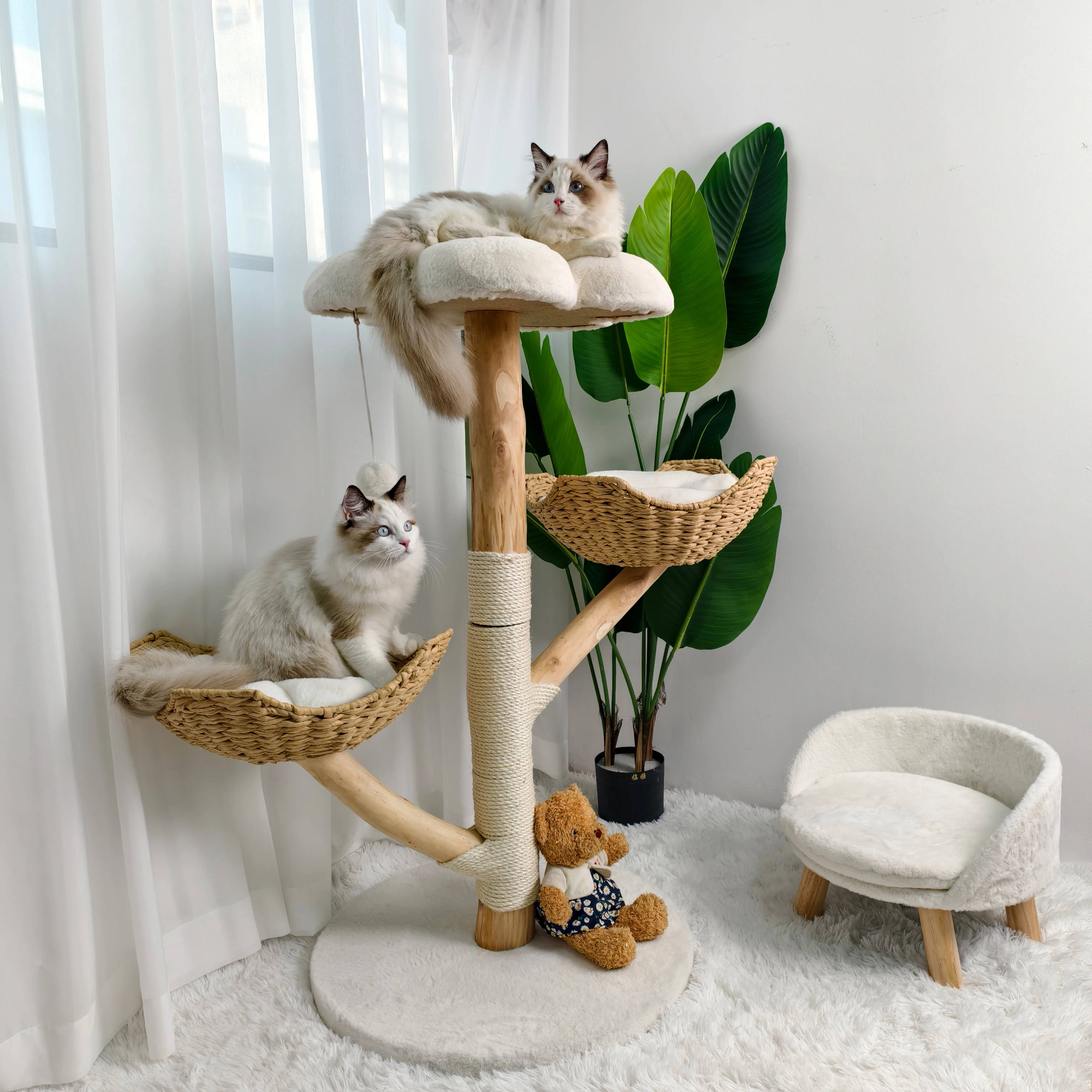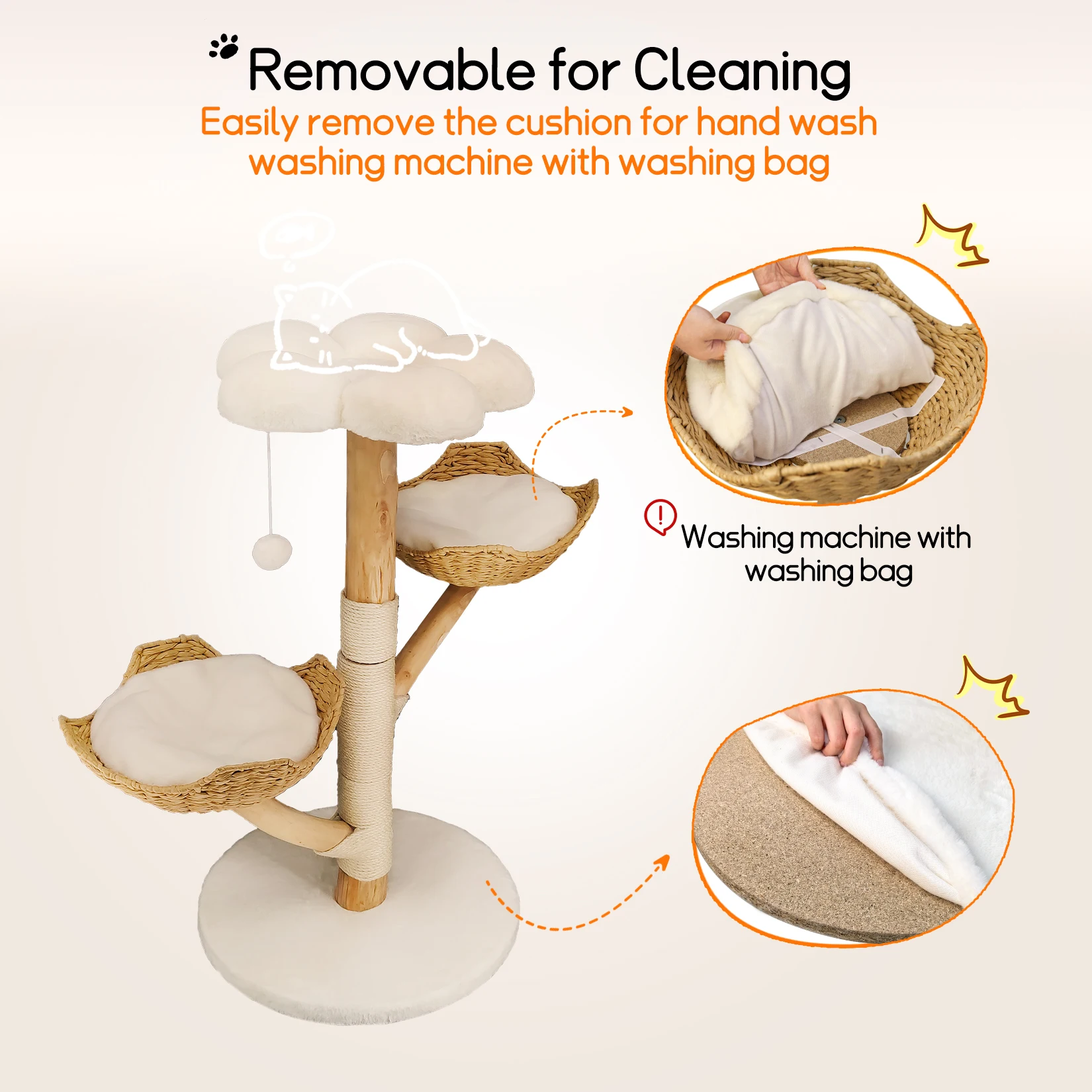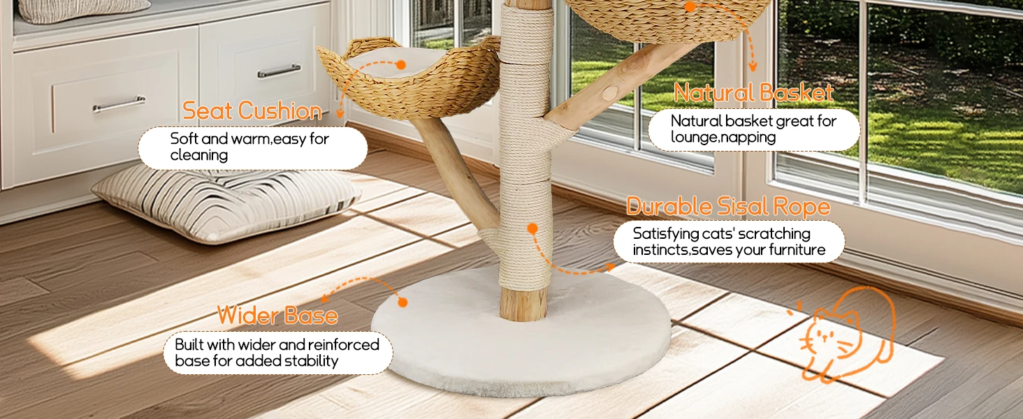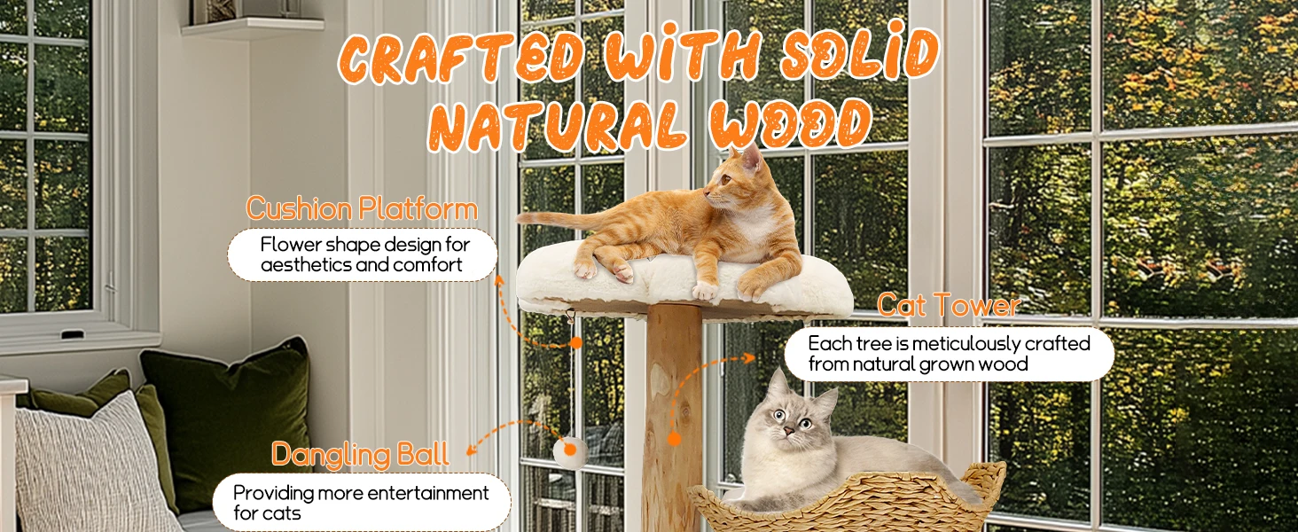 Selected Materials: The cat tower resembles a natural tree and effectively caters to the instinctual behaviors and needs of cats while also serving as an aesthetically pleasing addition to any environment. It is made of strictly selected naturally grown willow wood; each piece of timber maintains its shape and retains unique characteristics; therefore, the color and textures may slightly vary.