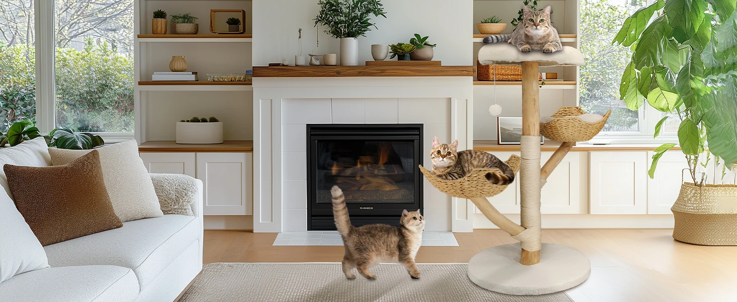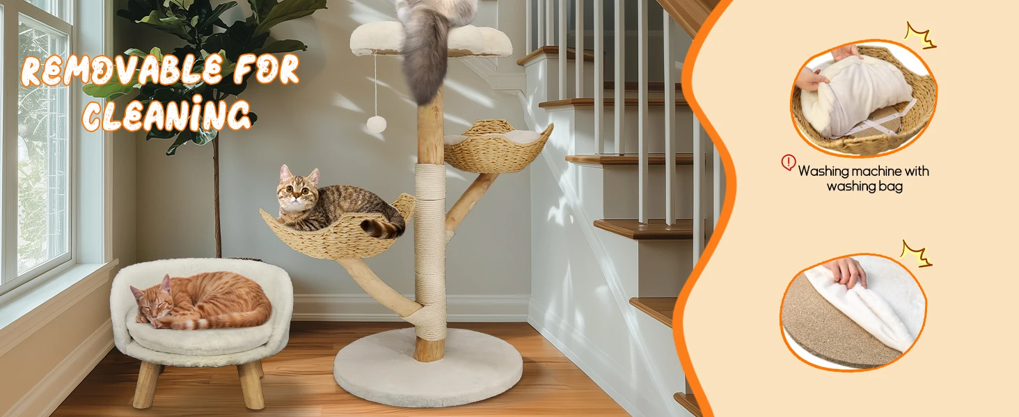 Cat Activity Tree: Having a cat activity tower in the home is a beneficial addition for both owners and their feline companions. This multi-level structure provides cats with a dedicated area for resting, playing, and exploring while their owners are occupied with daily tasks or work. The plush cushions not only ensure a sense of comfort and security but are also removable for easy cleaning, while the isal rope post and hanging ball keep them entertained and active.