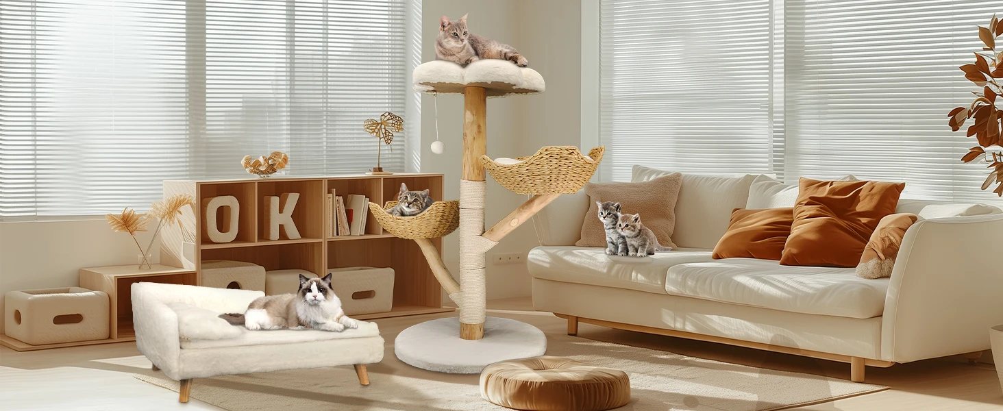 Multi-level Structure: Boasting a multi-level structure that is beneficial for families with multiple cats, the cat tower features cozy cushioned platforms and entertainment elements, which provide ample opportunities for physical exercise, allowing cats to engage in climbing and jumping and observe the surroundings from different heights, also enhancing their quality of life